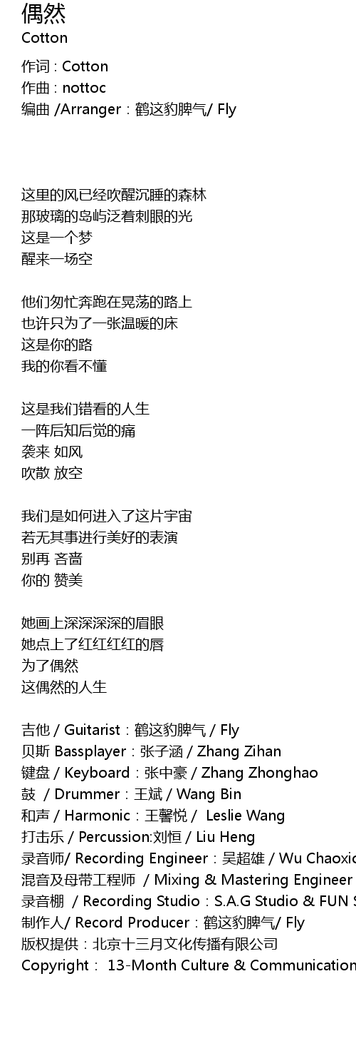 | hùn yīn jí mǔ dài gōng chéng shī Mixing Mastering Engineer: wáng chén yǔ Chen Yu | |