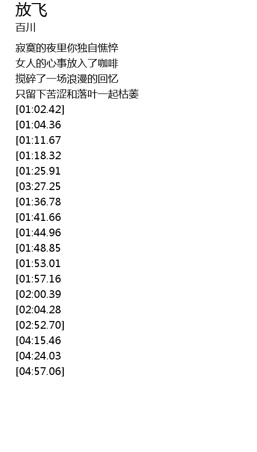| [04:30.96][04:15.46] | xiang yao fei xiang yao fei |