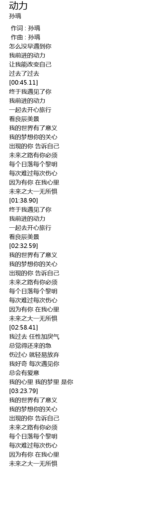 | [00:28.00] | wǒ qián jìn de dòng lì |