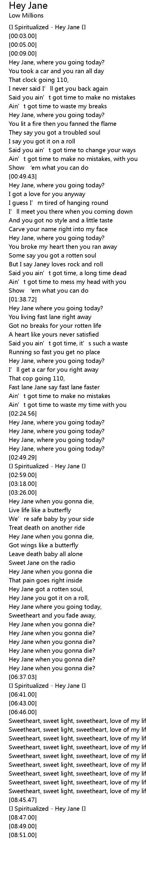 | [02:52.00] | ❤ Spiritualized - Hey Jane ❤ |