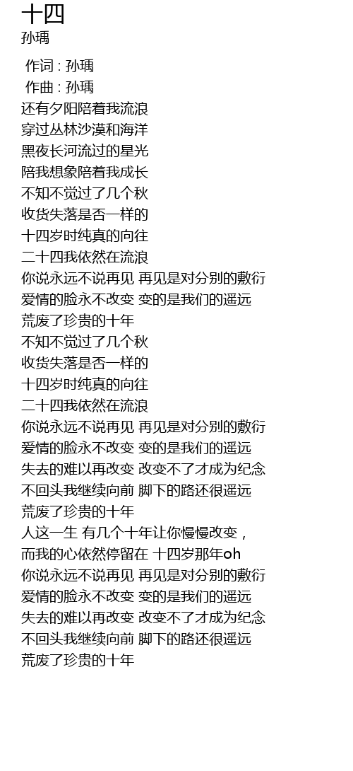 | [00:44.96] | 十四岁时纯真的向往 |