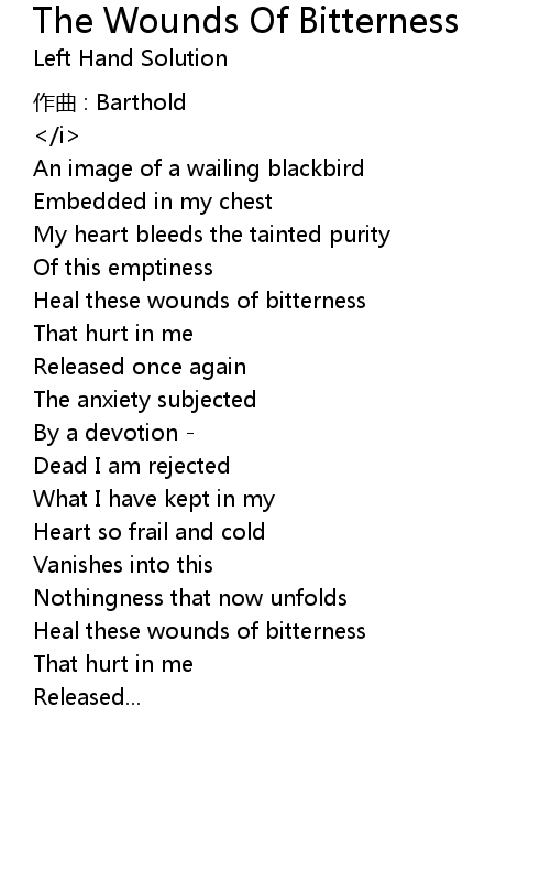 | 歌曲 | The Wounds Of Bitterness |