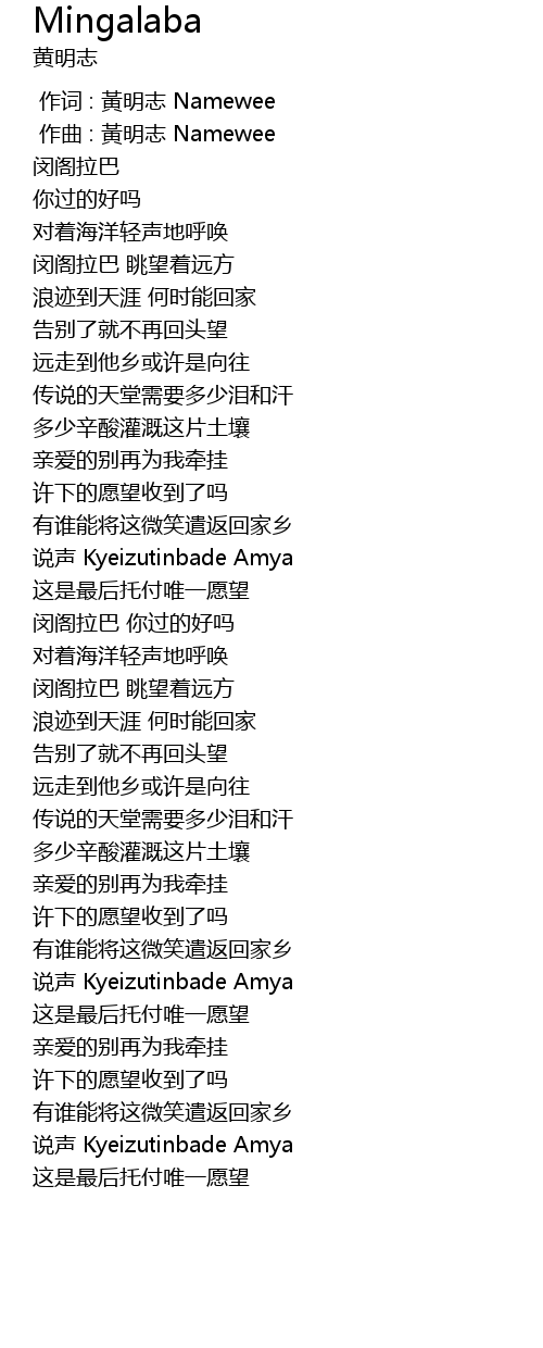 | [00:14.00] | 闵阁拉巴 |