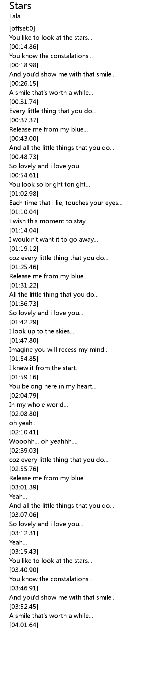 | [03:37.64] | You like to look at the stars... |