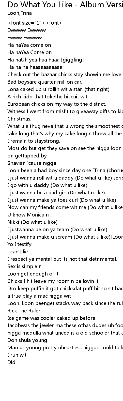| Loon been a bad boy since day one.[Trina (chorus)] | |