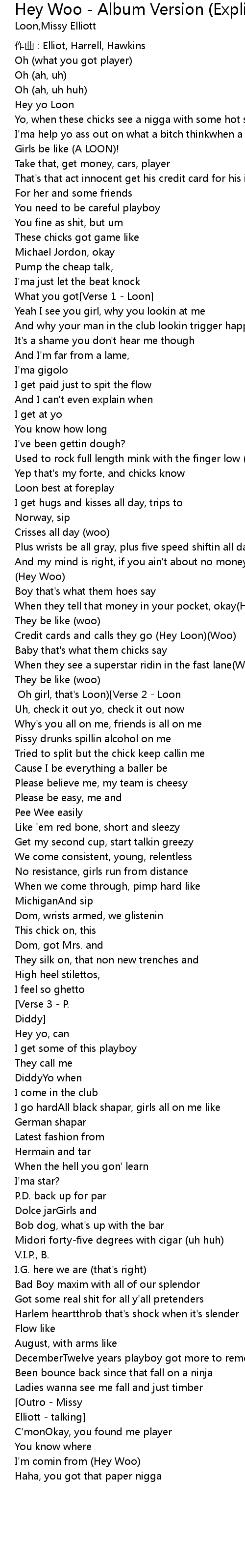 | And my mind is right, if you ain' t about no money, better find a life, aight Chorus Missy Elliott w ad libs Hey Woo | |