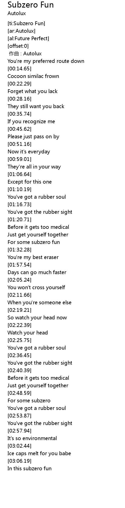 | [00:00.00] | zuo qu : Autolux |