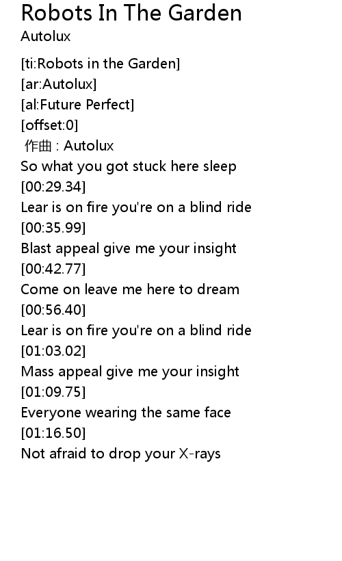 | [00:31.31] | Lear is on fire you' re on a blind ride |