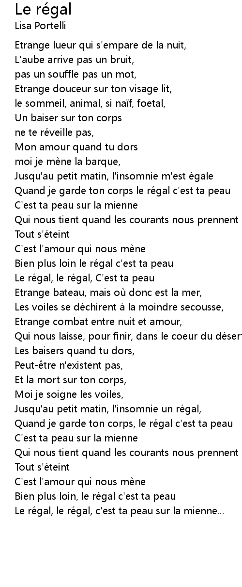 | Le ré gal, le ré gal, c' est ta peau sur la mienne... |