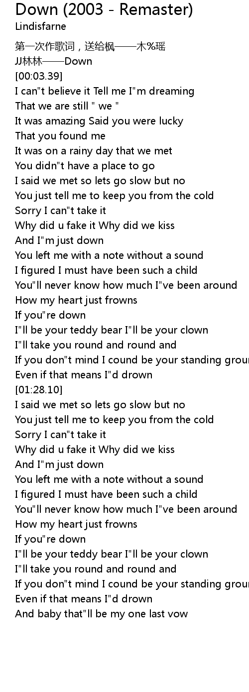 | [00:01.72] | JJ lin lin Down |