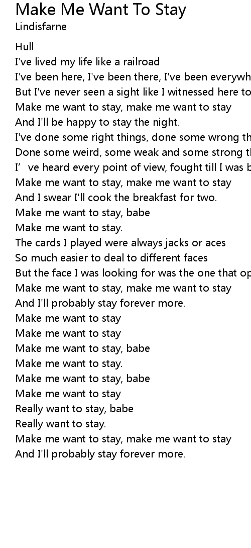 | Make me want to stay, make me want to stay | |