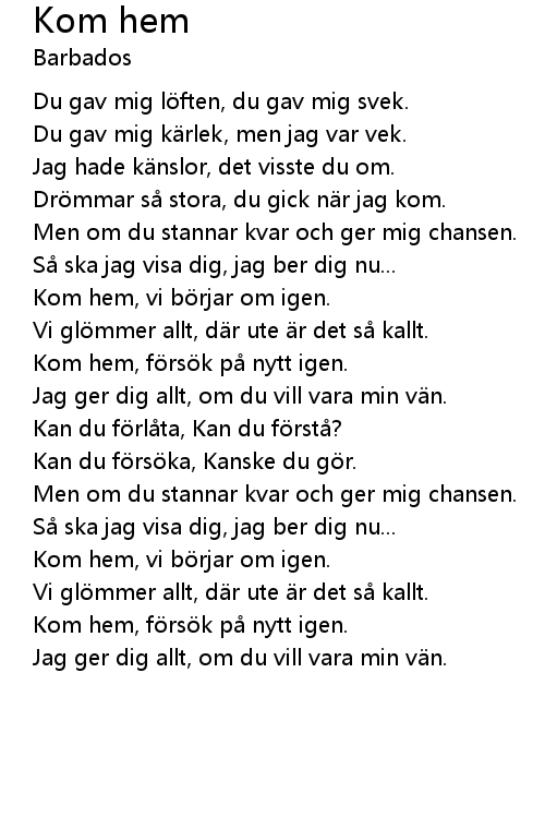 | 歌曲 | Kom hem |