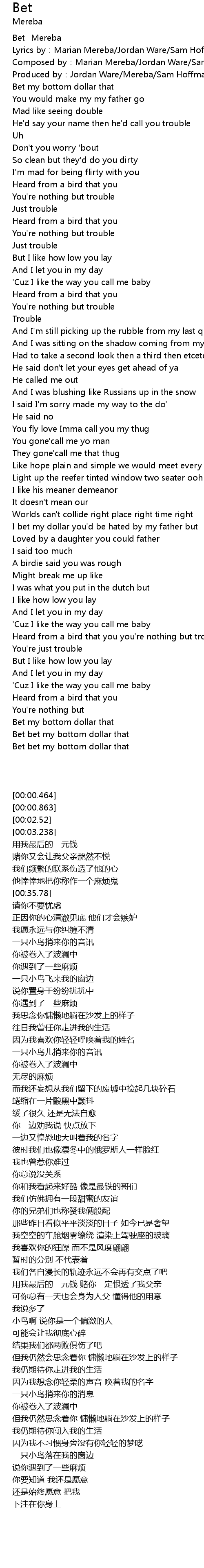 | [00:02.52] | Composed by:Marian Mereba/Jordan Ware/Sam Hoffman |