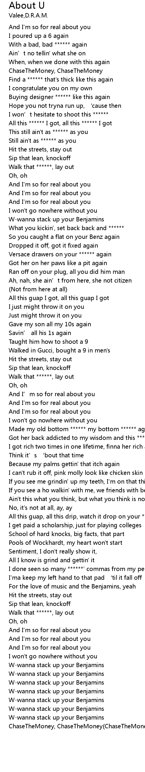 | [02:42.88] | All this guap, all this drip, watch it drop on your ****** |