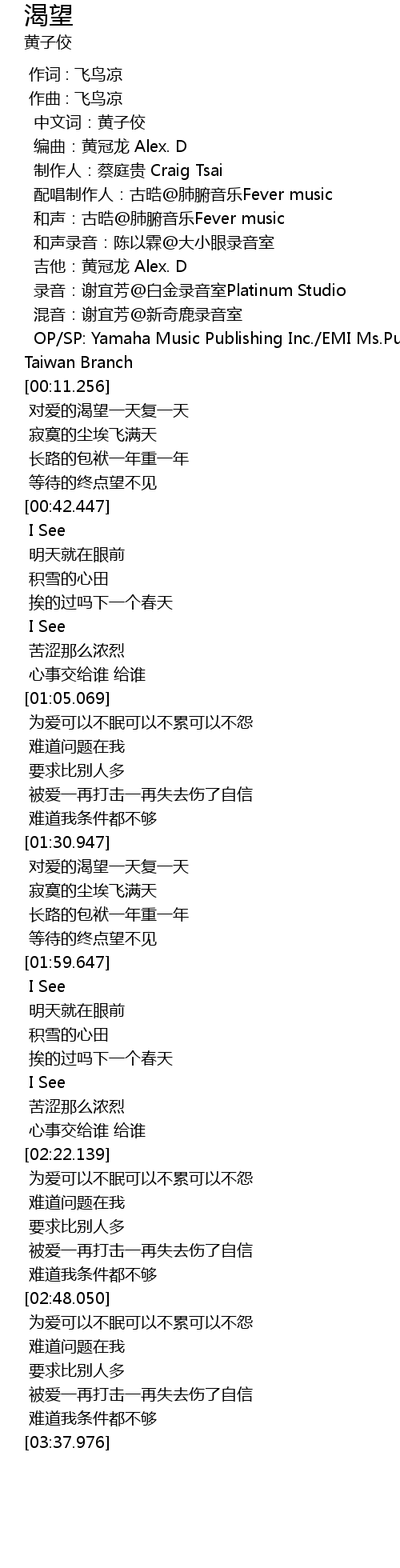 | [00:08.442] | 录音:谢宜芳@白金录音室Platinum Studio |