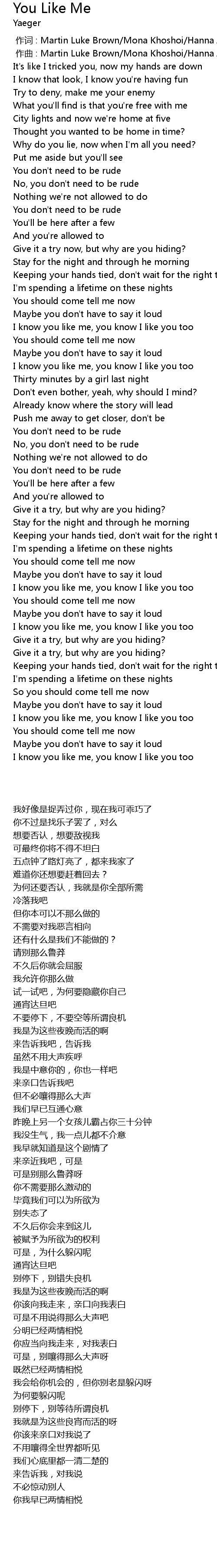 | 歌曲 | You Like Me |