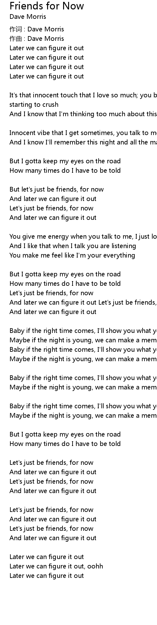 | And later we can figure it out Let's just be friends, for now | |