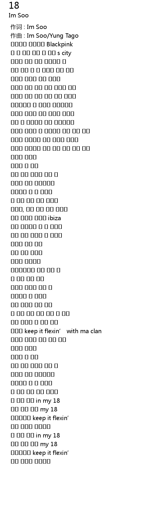 | [00:01.000] | 作曲 : Im Soo/Yung Tago |