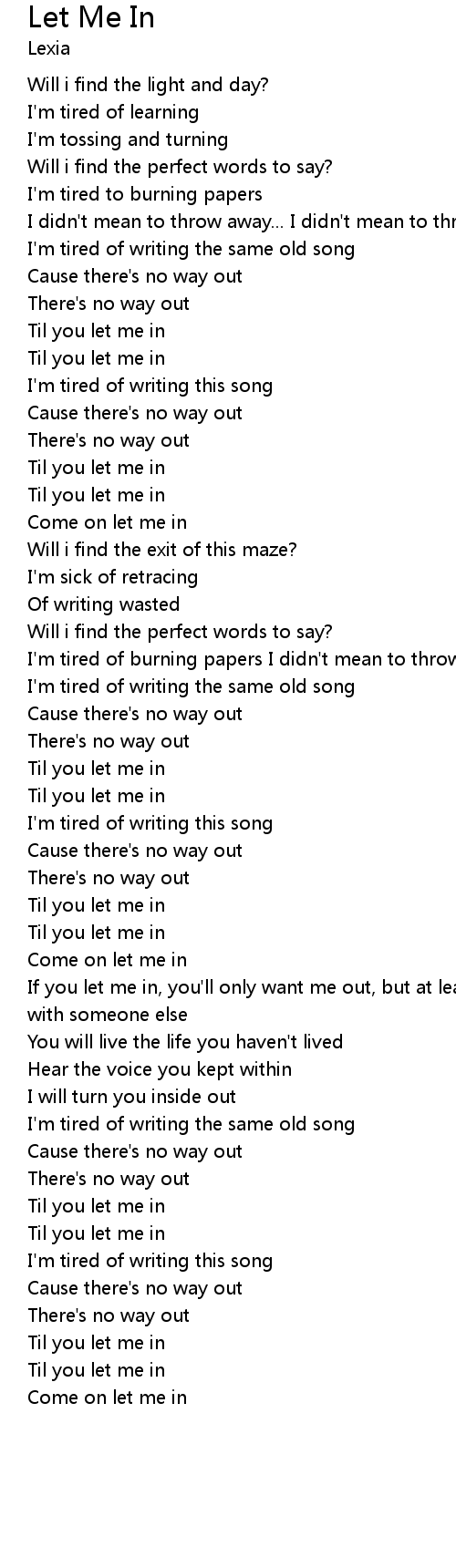 If you let me in, you'll only want me out, but at least you'll share the pain with someone else