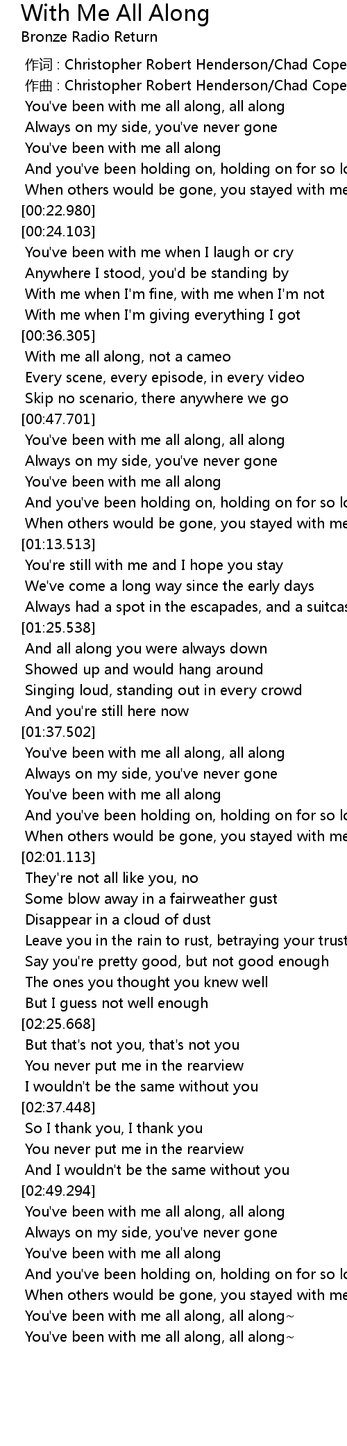 | [02:50.377] | You' ve been with me all along, all along |
