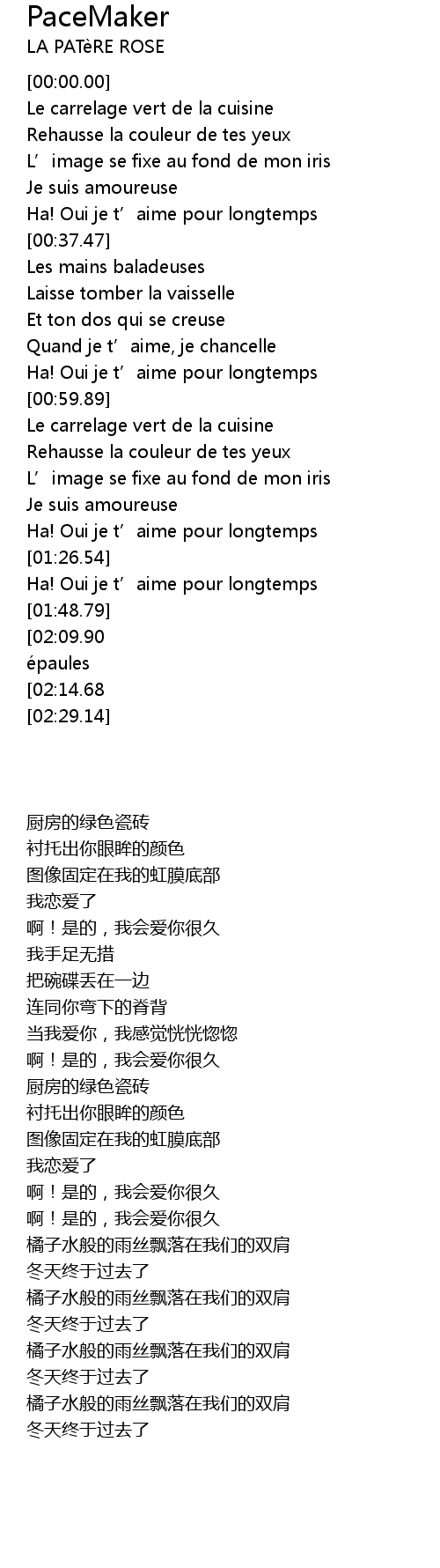 | [00:33.58] | Ha! Oui je t’aime pour longtemps |