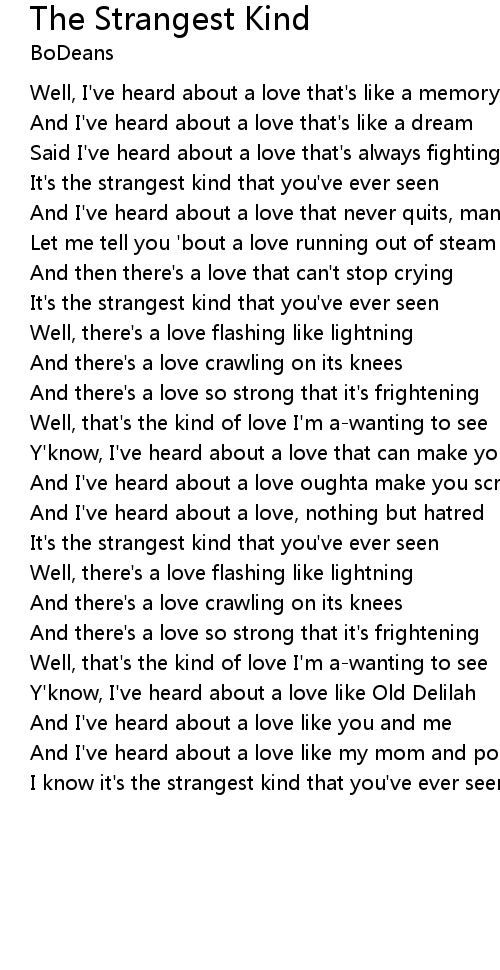 I know it's the strangest kind that you've ever seen |