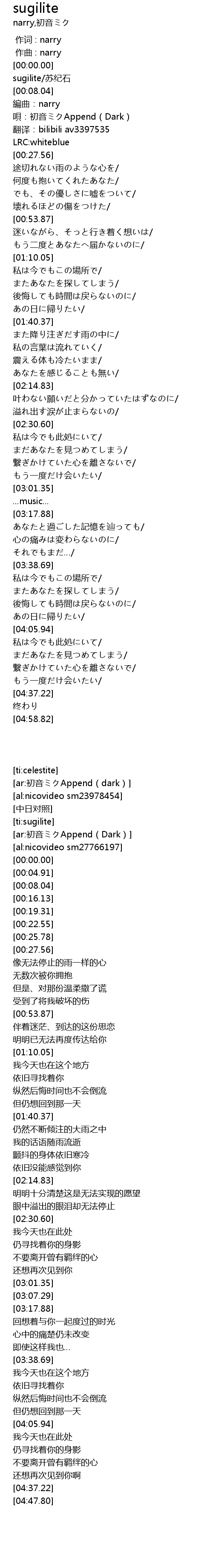 | [00:19.31] | 唄:初音ミクAppend(Dark) |