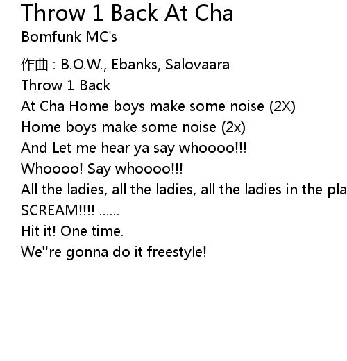 | 歌曲 | Throw 1 Back At Cha |