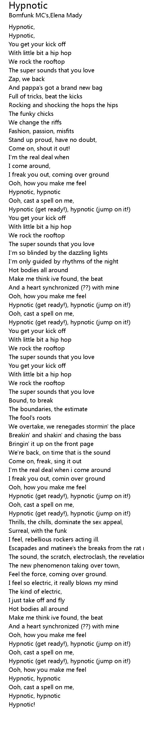 Hypnotic (get ready!), hypnotic (jump on it!) |