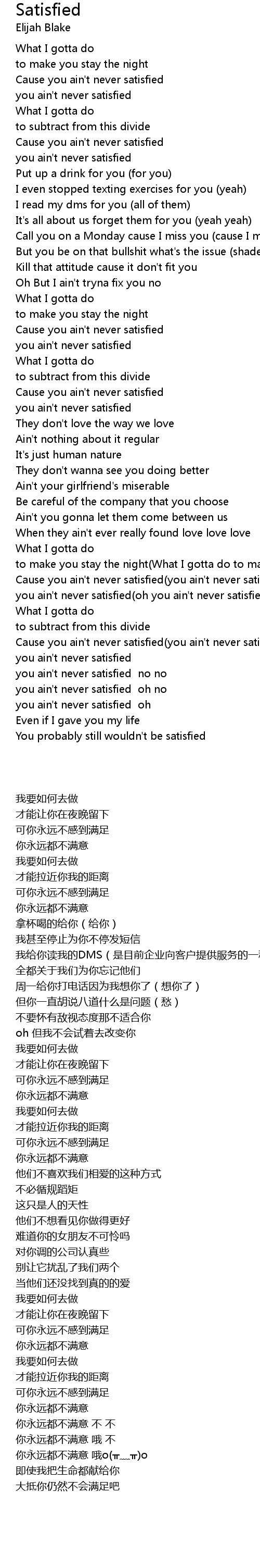 Cause you ain't never satisfied(you ain't never satisfied) |