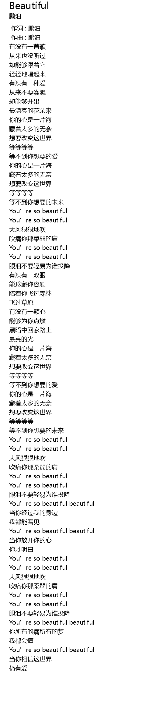 | [03:33.41] | You' re so beautiful beautiful |