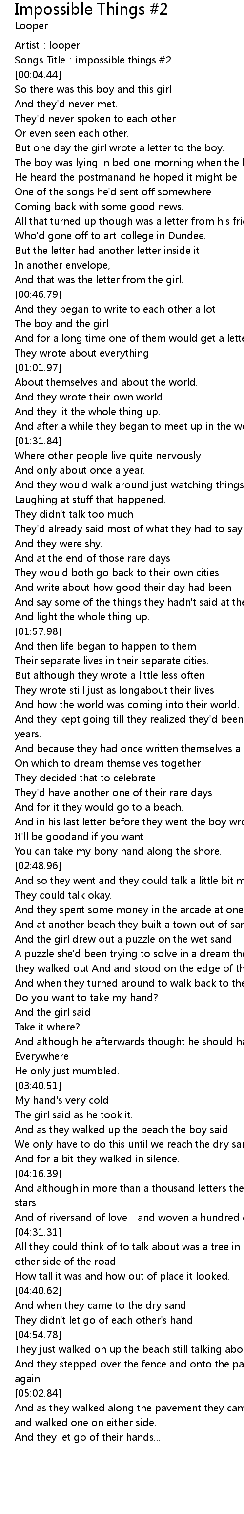 | [00:01.98] | Songs Title:impossible things #2 |