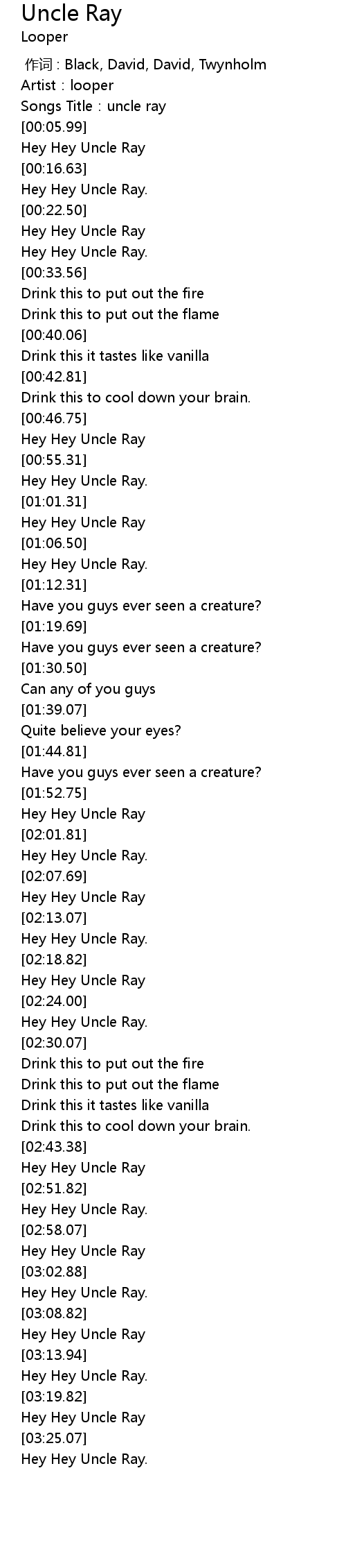 | [02:58.82] | Hey Hey Uncle Ray |