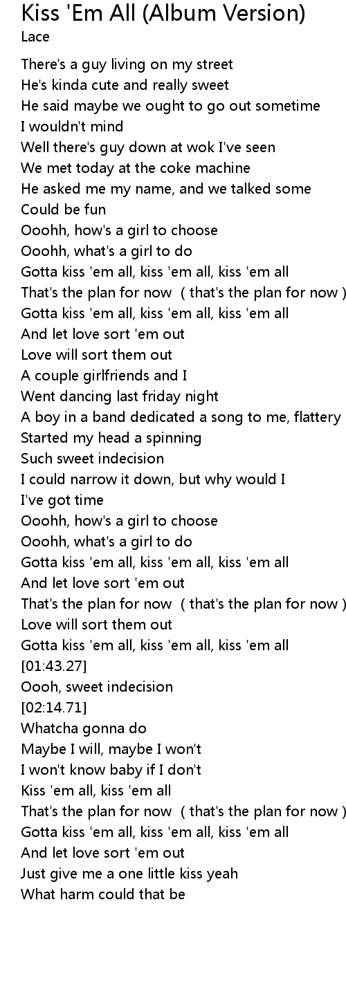 | [01:53.82] | Gotta kiss ' em all, kiss ' em all, kiss ' em all |