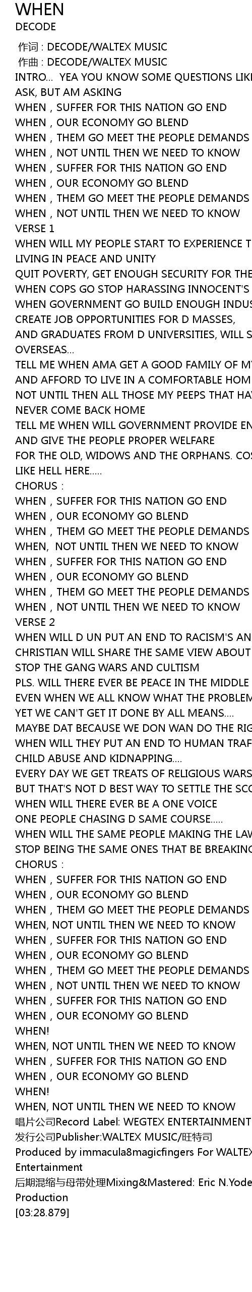 | [02:30.970] | WHEN, THEM GO MEET THE PEOPLE DEMANDS |