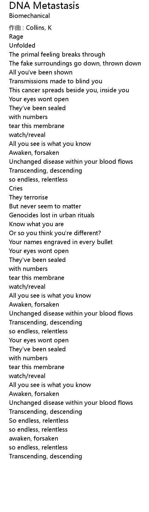| 歌曲 | DNA Metastasis |