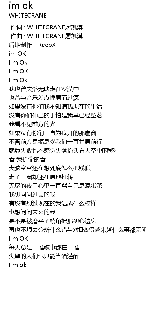 | [00:00.000] | 作词 : WHITECRANE屠凯淇 |