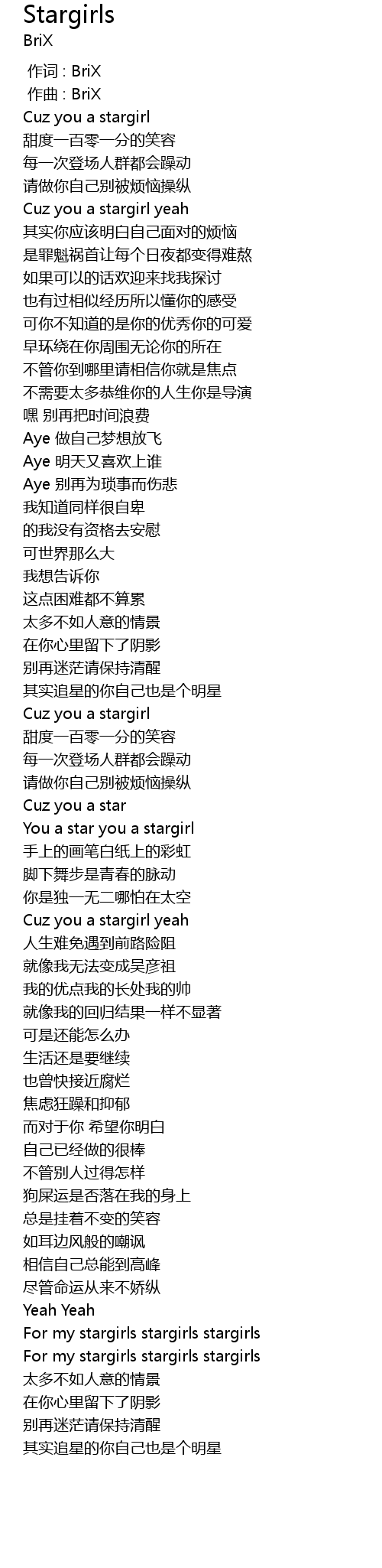 | [00:00.000] | 作词 : BriX |