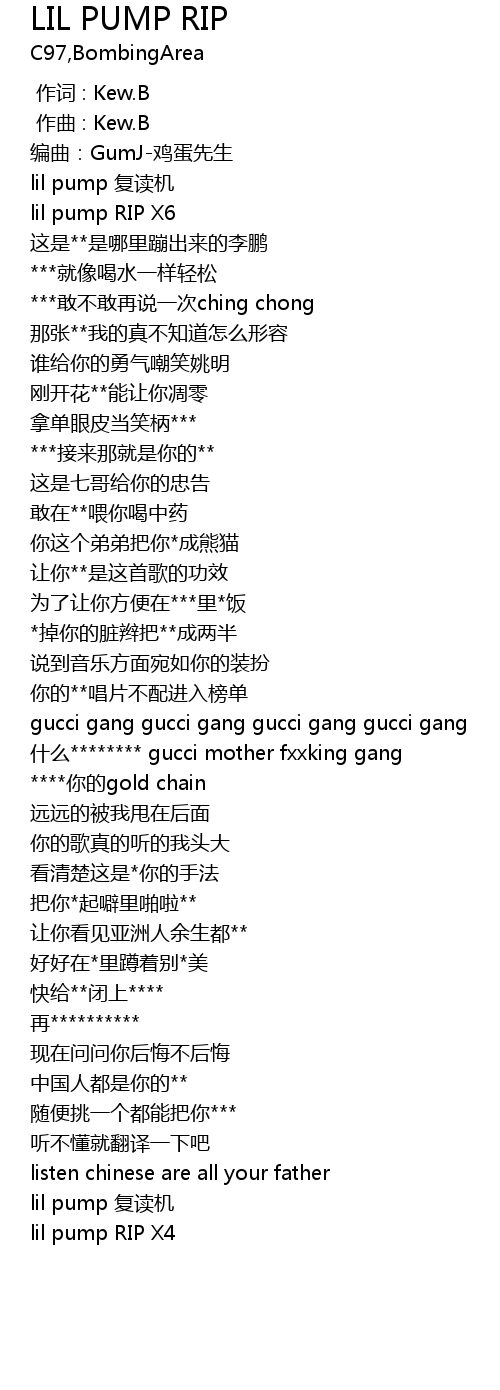 | [00:54.148] | 什么******** gucci mother fxxking gang |