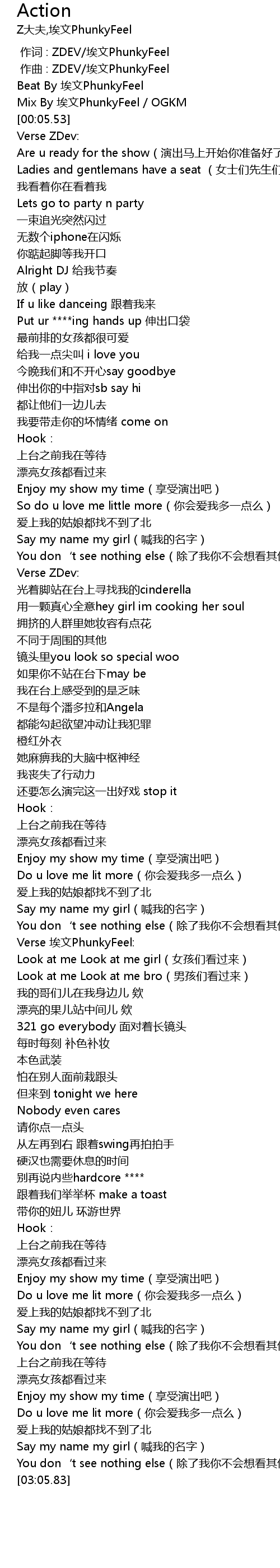 | [00:16.47] | Are u ready for the show yǎn chū mǎ shàng kāi shǐ nǐ zhǔn bèi hǎo le me |