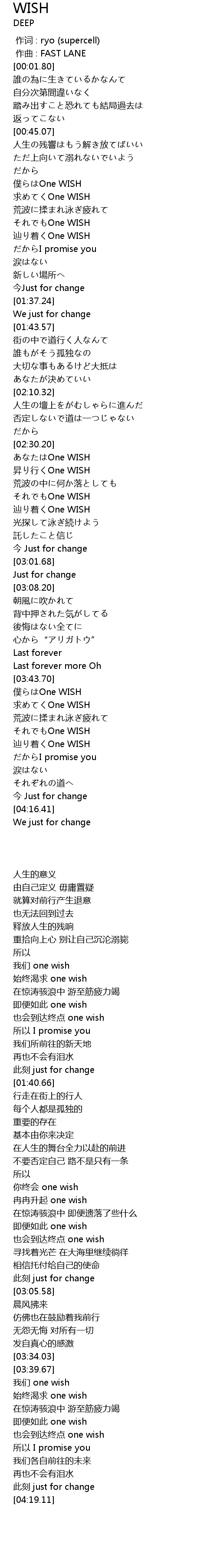| [01:19.24] | One WISH |