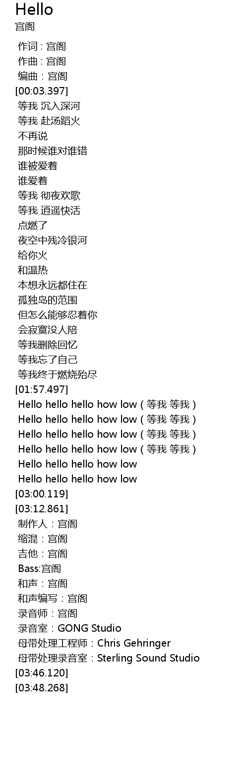 | [02:36.466] | Hello hello hello how low(等我 等我) |