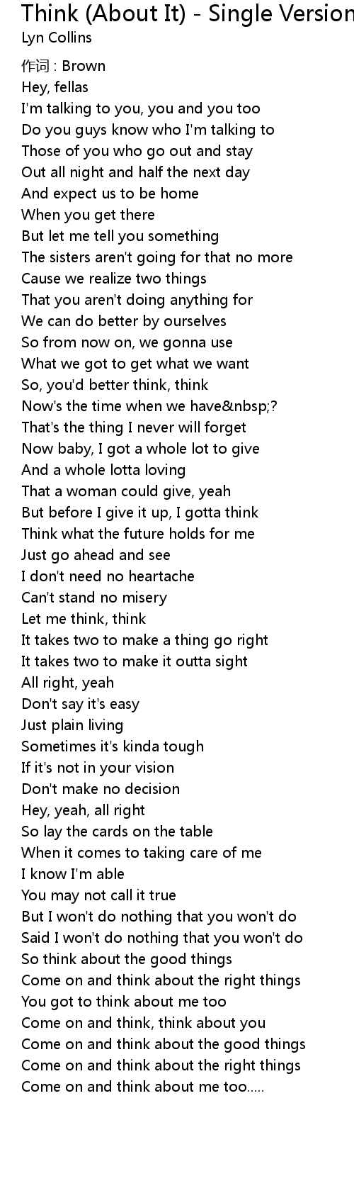 | 歌曲 | Think (About It) - Single Version |