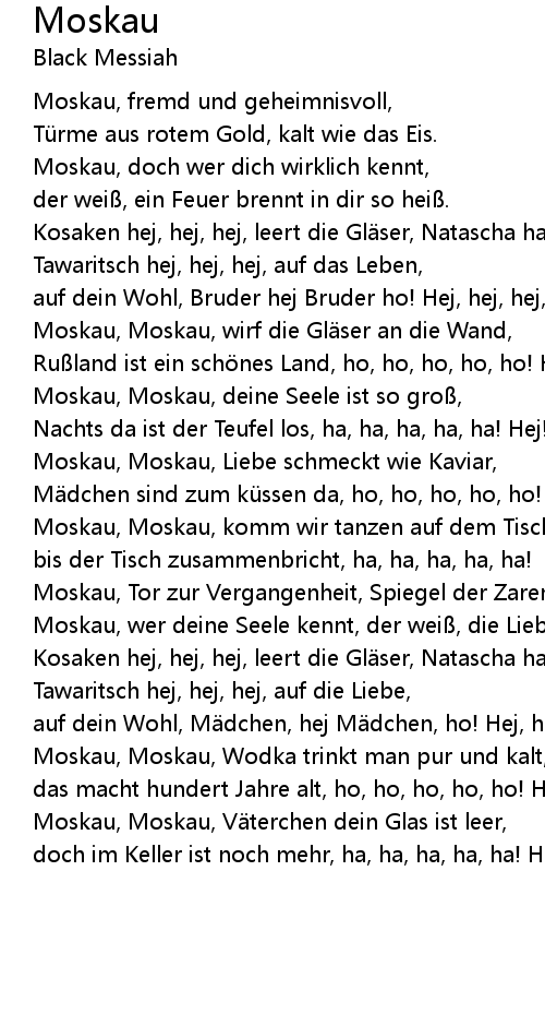 | Moskau, Moskau, deine Seele ist so gro, | |