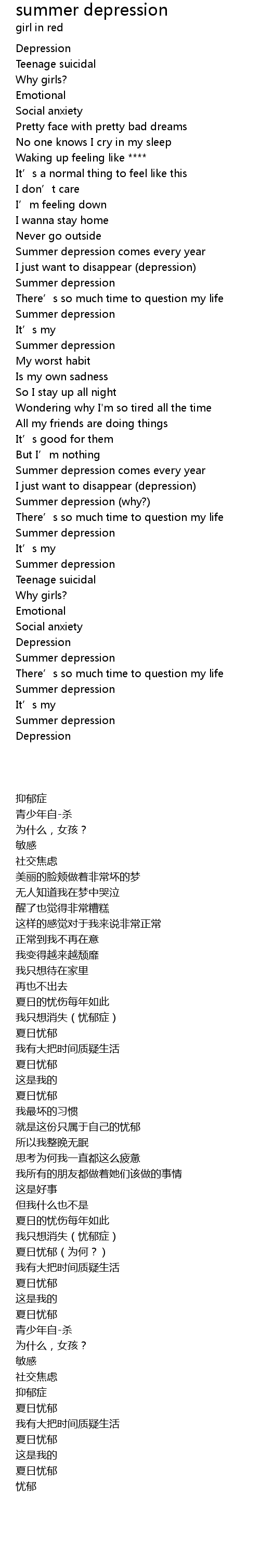 | [00:43.67] | I just want to disappear depression |