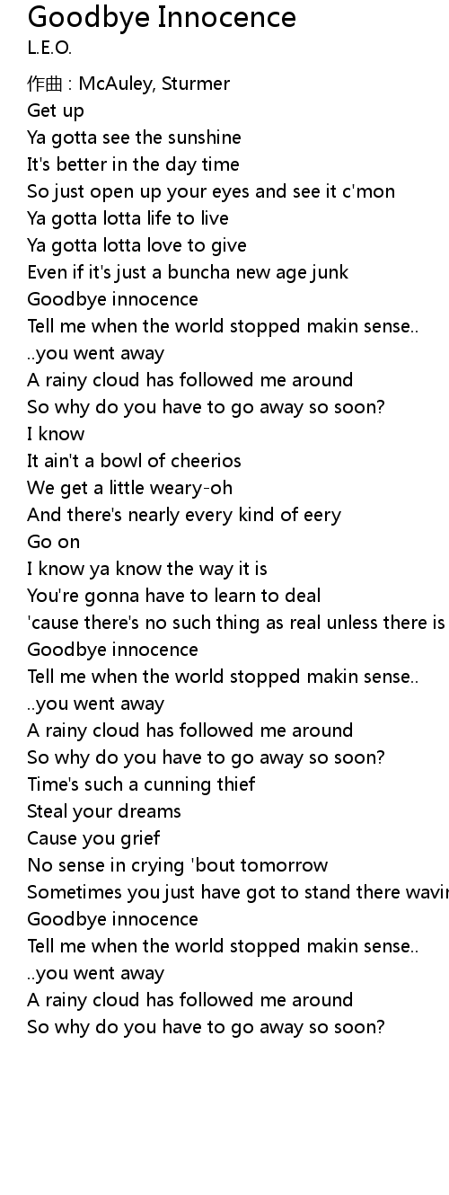 | 歌曲 | Goodbye Innocence |