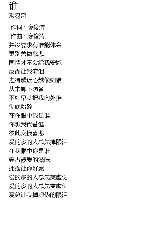 | [01:42.418] | 爱的多的人总先变虚伪 |