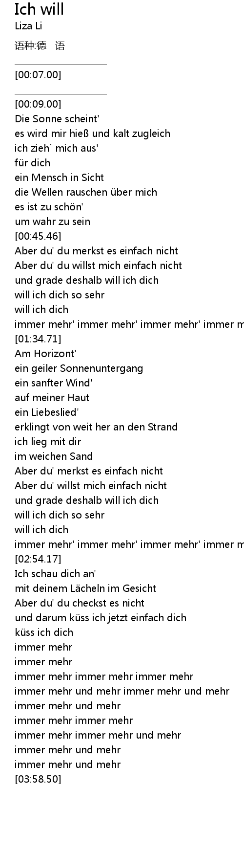 | [01:27.81] | immer mehr' immer mehr' immer mehr' immer mehr und mehr |