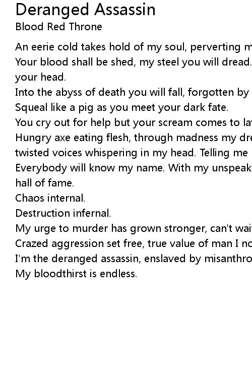 I'm the deranged assassin, enslaved by misanthropy. |