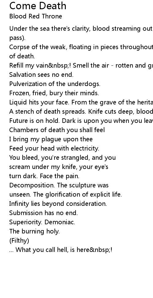 A stench of death spreads. Knife cuts deep, bloody organs. Alienated. |